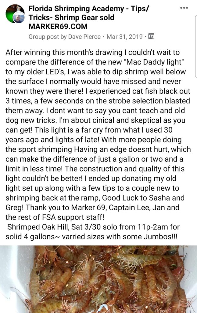 Have questions? Capt Lee Noga mentors a Facebook® shrimping community (27k+) who depend on MacDaddy lights. Click here
